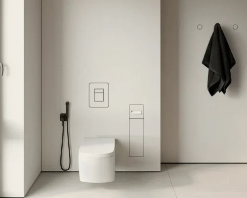 كل المكونات بتكون مدفونة داخل الحائط، وده بيدي الحمام شكل راقي ومودرن بدون أي بروز في الحيطة.